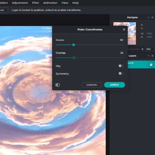 500×501 polar coordinate effect from pixlr.com