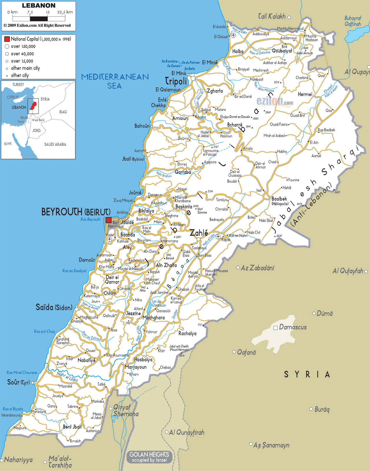 940×1105 beirut map lebanon from www.worldmap1.com